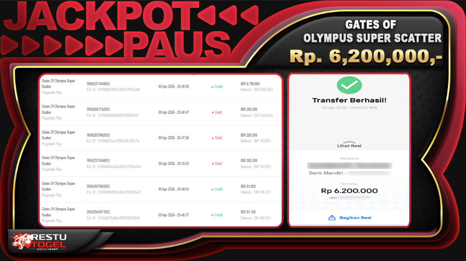 Kemenangan Rp. 6,200,000 dengan status LUNAS pada Minggu, 05 April 2026 menjadi bukti bahwa peluang jackpot bisa diraih dengan strategi dan pengelolaan modal yang tepat. Tetaplah bermain secara bijak dan jadikan permainan sebagai hiburan. Disiplin serta kontrol diri adalah kunci utama dalam meraih hasil maksimal.