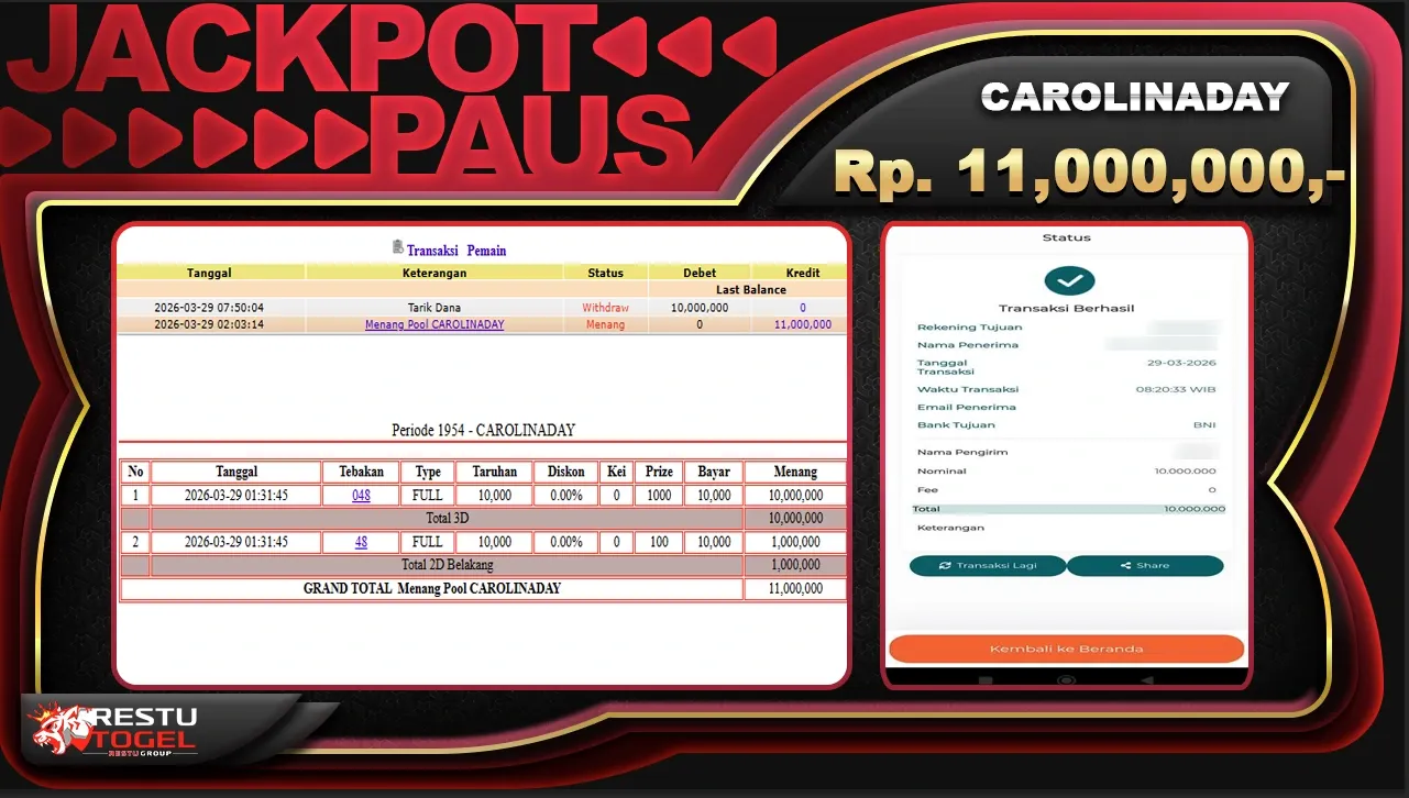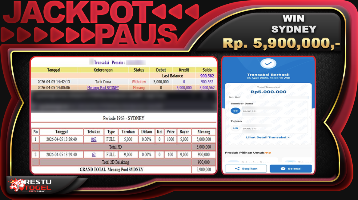Kemenangan Rp. 5,050,000 dengan status LUNAS pada Sabtu, 18 April 2026 menjadi bukti bahwa peluang jackpot bisa diraih dengan strategi dan pengelolaan modal yang tepat. Tetaplah bermain secara bijak dan jadikan permainan sebagai hiburan. Disiplin serta kontrol diri adalah kunci utama dalam meraih hasil maksimal.