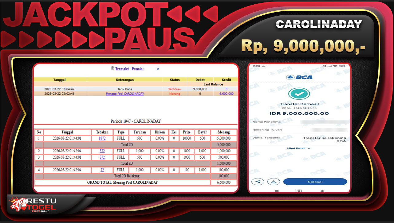 Bukti pembayaran di bawah adalah bukti kemenangan player RESTUTOGEL yang sudah di bayar lunas dan sudah masuk ke rekening player. Sebagai situs judi online yang terpercaya situs RESTUTOGEL akan memberikan bukti bukti player yang mendapatkan kemenangan yang besar di RESTUTOGEL. Bukti transfer yang kami publish adalah bukti kemenangan player sudah kami bayar lunas tanpa di cicil. Untuk bukti pembayaran lainnya dapat dilihat di website resmi RESTUTOGEL.