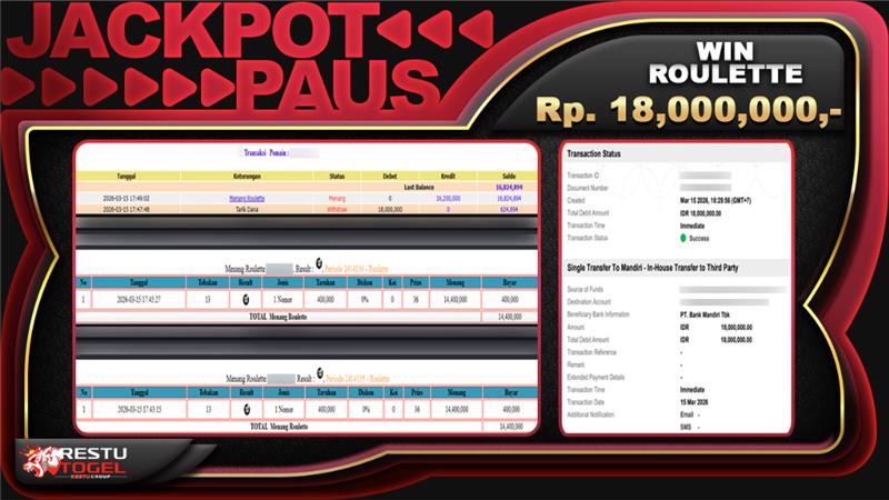 Bukti Jackpot RESTUTOGEL Slot Online Senin 16 Maret 2026 – RESTUTOGEL merupakan situs togel online, slot online dan casino online terpercaya yang selalu bayar kemenangan member secara lunas. Keberuntungan besar kembali diraih oleh salah satu pemain pada Rabu, 16 Maret 2026. Dengan nominal taruhan yang relatif terjangkau, pemain berhasil mendapatkan kemenangan sebesar Rp. 6,000,000, dan…