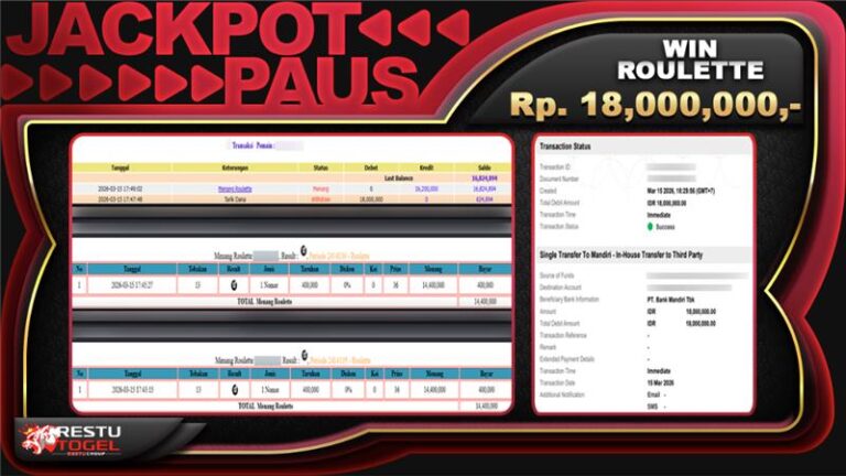 Bukti Jackpot RESTUTOGEL Slot Online Kamis 19 Maret 2026 – RESTUTOGEL merupakan situs togel online, slot online dan casino online terpercaya yang selalu bayar kemenangan member secara lunas. Keberuntungan besar kembali diraih oleh salah satu pemain pada Jum’at, 06 Maret 2026. Dengan nominal taruhan yang relatif terjangkau, pemain berhasil mendapatkan kemenangan sebesar Rp. 6,009,000 dan…